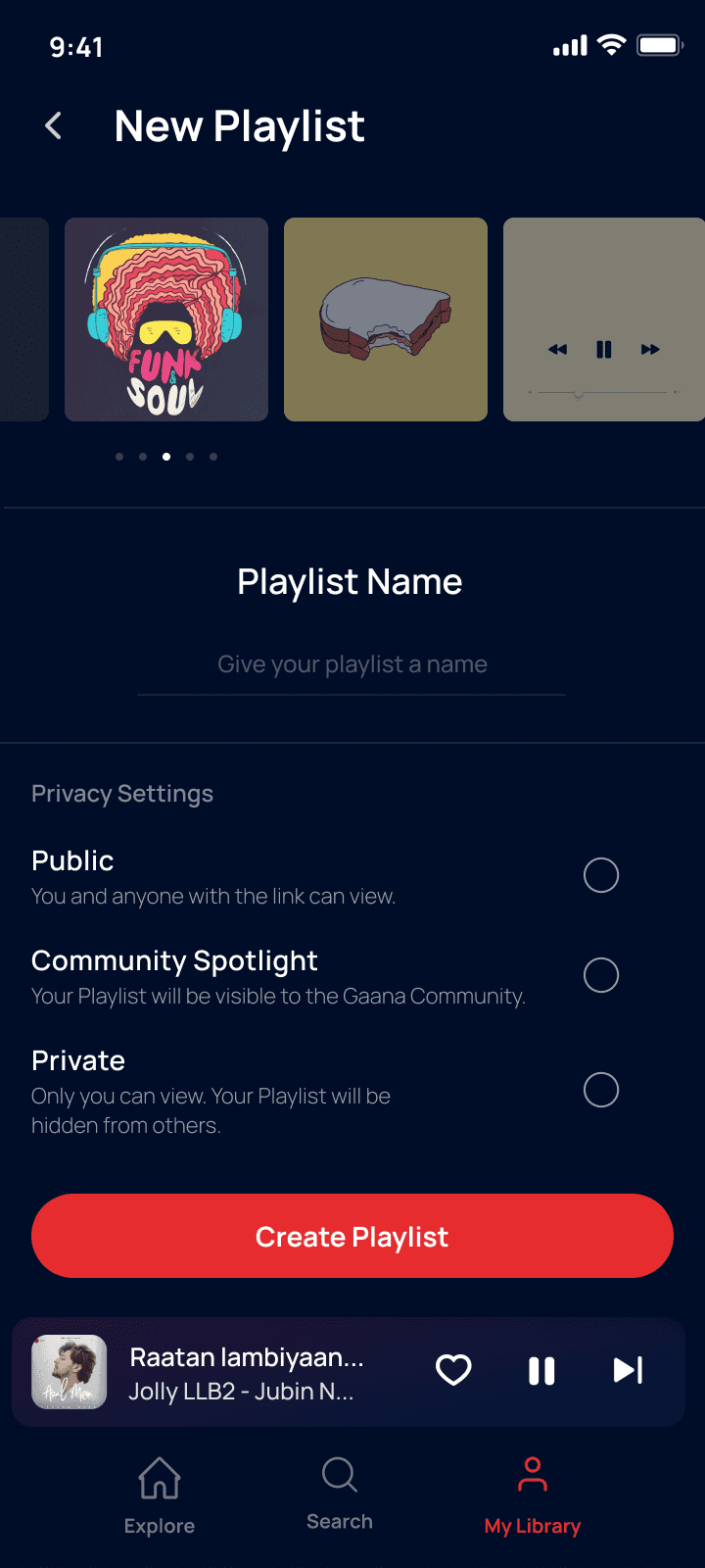 I made the primary "Create Playlist" action immediately accessible.