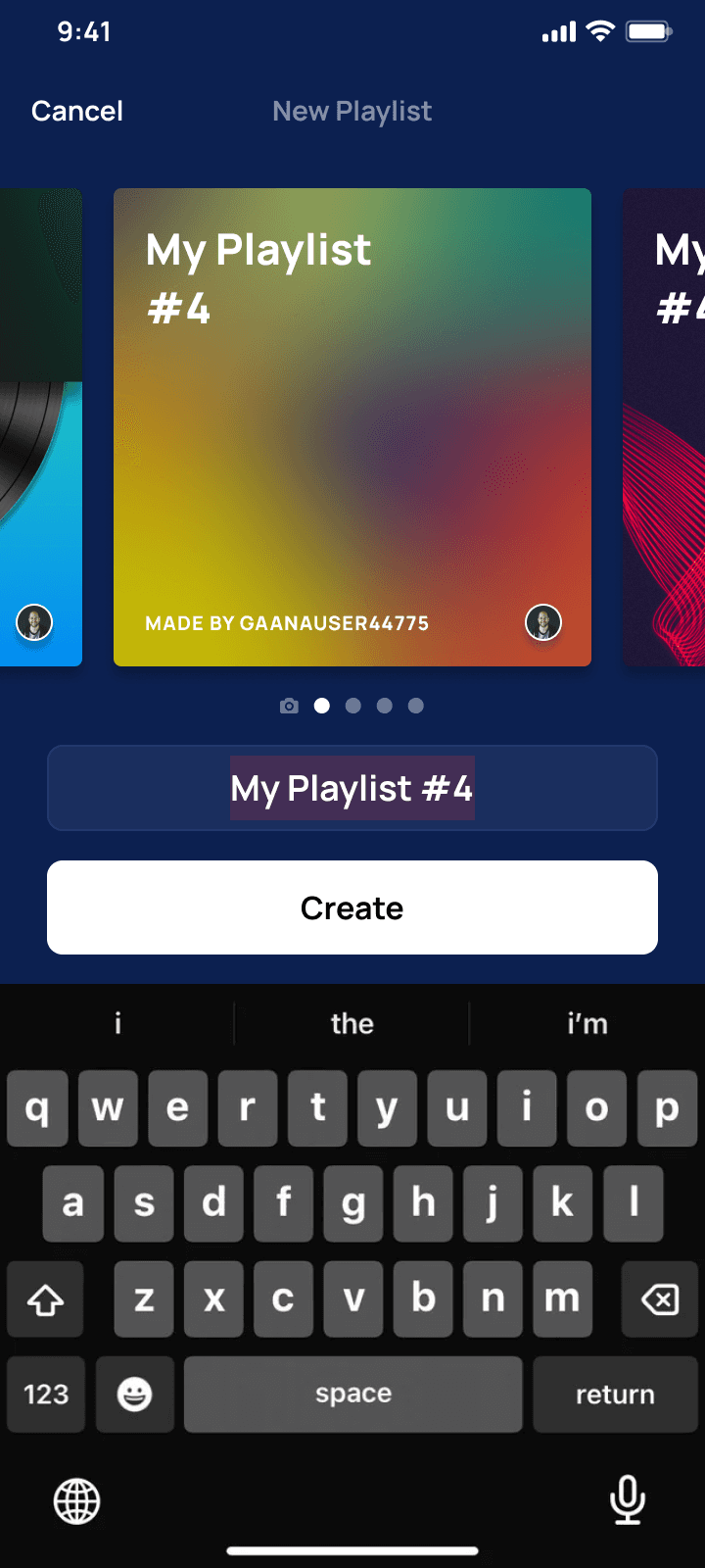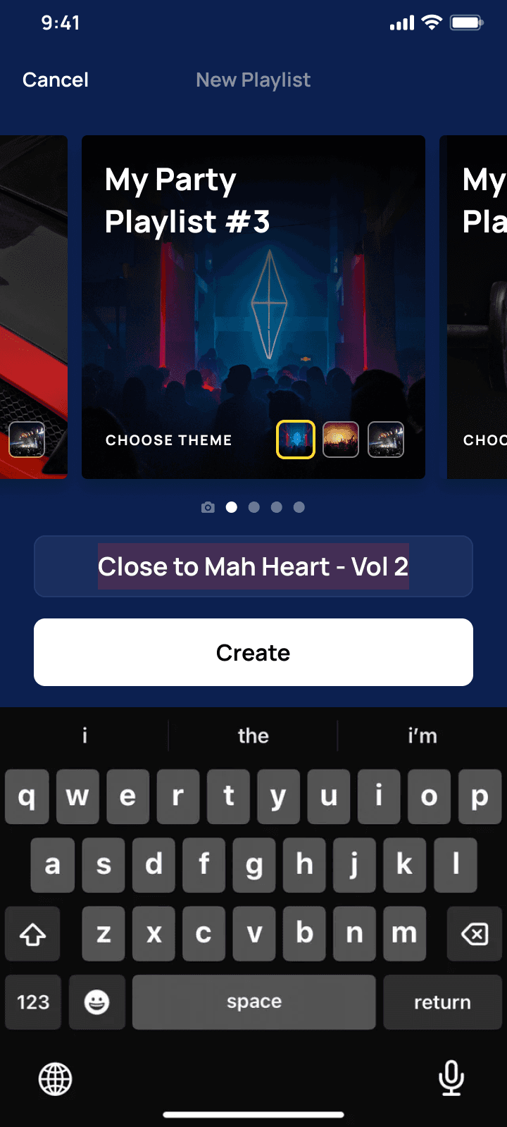 The naming screen wasn't just a naming screen, it was personal. Users could upload their own thumbnails or choose Moods, The meta data then suggested songs based on the moods chosen.