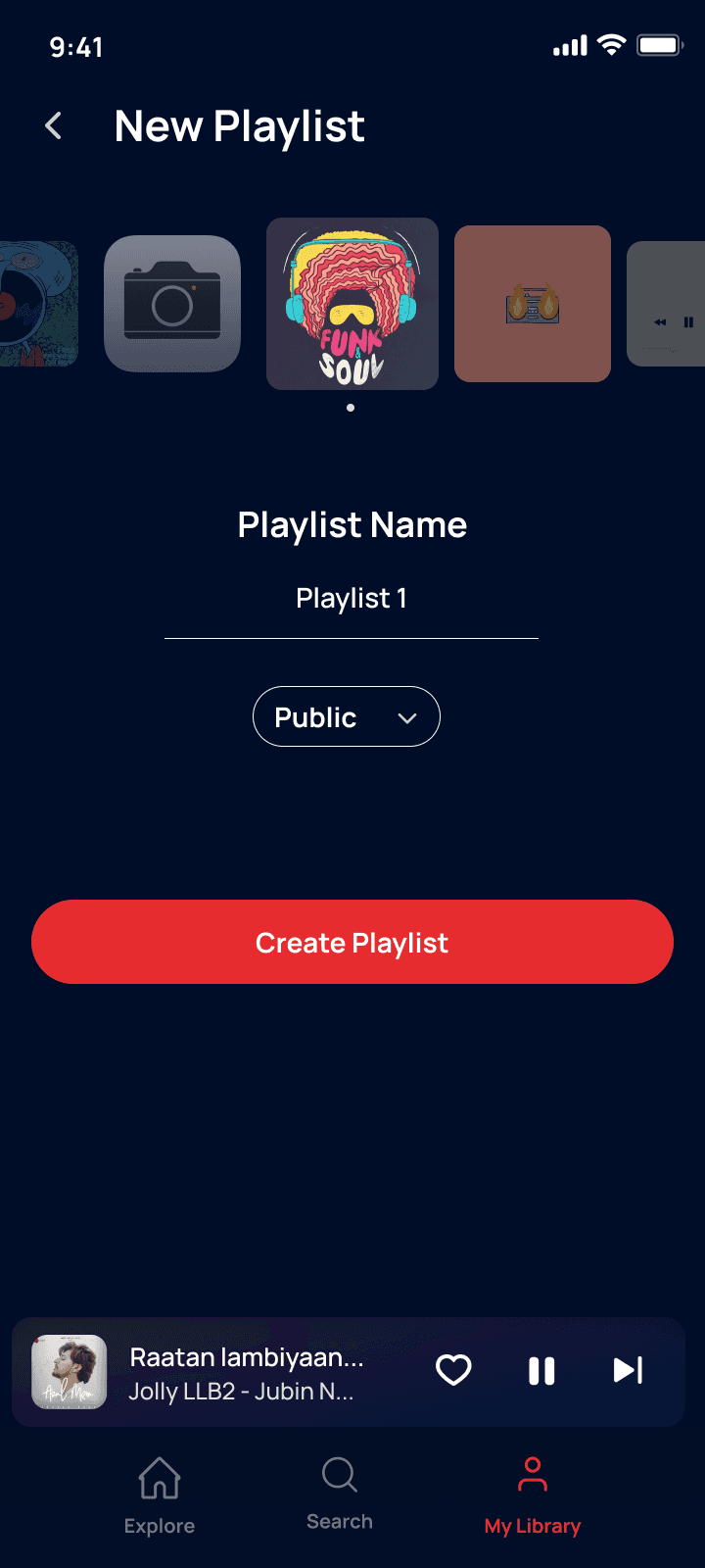 Users can personalize their new playlist instantly by choosing a custom cover or a mood-based image . Choosing a mood gives the apps meta data a hint to provide them with instant, relevant song suggestions, all while letting them choose who can see the playlist.
