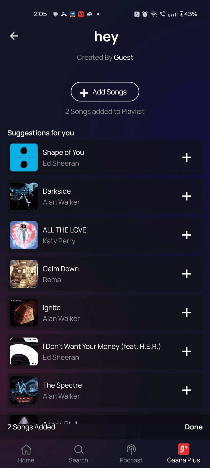 Even if sometimes ( a miracle ) the songs were suggested, the CTA to move to the main playlist screen was difficult to locate.